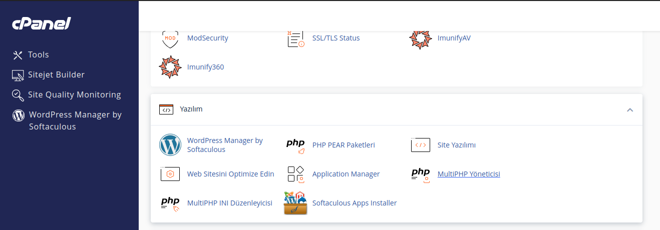 cPanel, web barındırma (web hosting) hizmeti sağlayan firmaların kullandığı yaygın bir kontrol paneli yazılımıdır. cPanel, web sitesi yönetimini daha kolay ve kullanıcı dostu bir hale getirir. Genellikle grafik arayüzüyle sunulan bir kontrol panelidir. Bu da kullanıcıların web sitelerini yönetmelerini ve yapılandırmalarını daha kolay hale getirir. cPanel üzerinden PHP sürüm yükseltme veya alçatma işlemleri oldukça kolaydır. cPanel ile projenize uygun PHP sürümünü seçerek tam uyumluluk sağlayabilirsiniz. cPanel üzerinde PHP sürümünü değiştirmek için aşağıdaki adımları adım adım uygulayabilirsiniz.